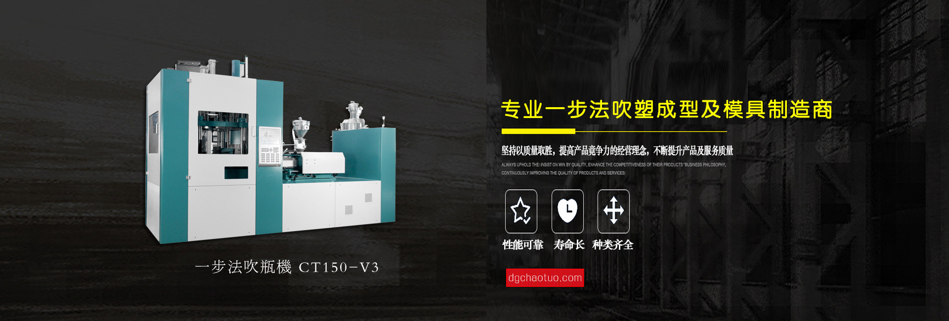 東莞超拓機械有限公司是一家專業(yè)設(shè)計生產(chǎn)一步法注吹機及相關(guān)配套模具的制造企業(yè), 公司自成立至今,始終以市場為導(dǎo)向、科技為基礎(chǔ)、質(zhì)量第一、用戶至上為服務(wù)宗旨,并一直在跟進和學(xué)習(xí)世界上先進的“注拉吹”中空成型技術(shù)專業(yè)領(lǐng)域配件制造和檢驗技術(shù),不斷地創(chuàng)新求異,其中PPSU奶瓶領(lǐng)先國內(nèi)同行業(yè),堅持“超越拓展,品質(zhì)保證”的企業(yè)文化理念,為客戶提供上乘服務(wù)。公司總經(jīng)理姜業(yè)東攜全體員工衷心感謝新老客戶的支持和關(guān)愛,竭誠歡迎各位朋友蒞臨指導(dǎo)與合作,共圖發(fā)展。